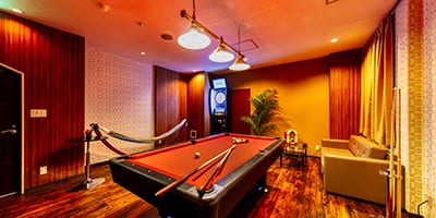 ホテルなのにバッティング、ミニテニス、バドミントンにバスケットボールや フットサルまで、また2F共有スペースではダーツ&ビリヤードも楽しめます。 ※24時間ご利用無料で時間貸しになります